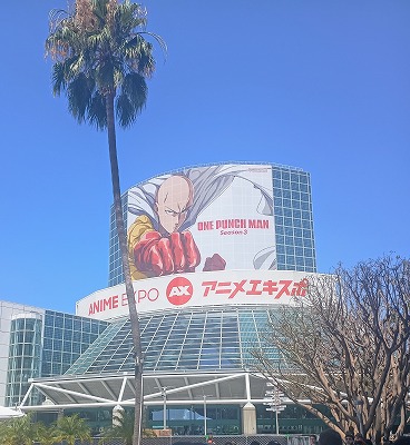 ロサンゼルスコンベンションセンターにどどーんと禿げマント、いや失礼ワンパンマンの絵とカタカナで「アニメエキスポ」と出ているのを見るとなんだか不思議な気がします。