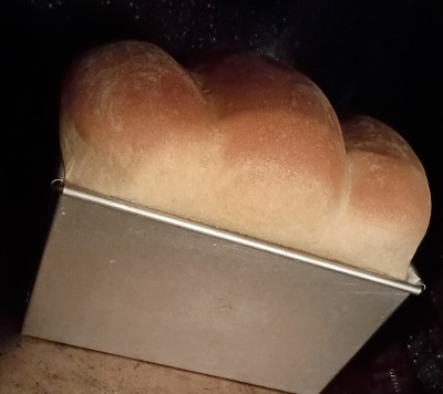 ・・・いやね、パン型のサイズが何斤用か良くわからなかったんですよ。んで、とりあえず小麦粉500gのレシピで作ったんですが、多すぎたっぽいです。