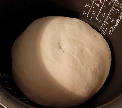 キッチンエイドは写真撮り忘れたので、炊飯器で一次発酵する前の生地