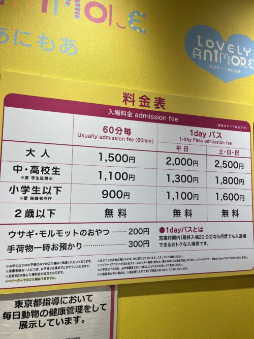 1時間大人1500円小学生900円という、まーまーまー子供が入りたいっていうならまーいいか、っていう絶妙な料金で、モルモットとウサギの餌が200円という。