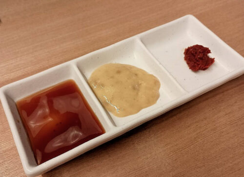 あ、そうそう。一点だけ、たれ3種みたいなのを頼んだんですが、この量で4ドルはちょっと高いかなという気がしました。味は良かったんですけどね。