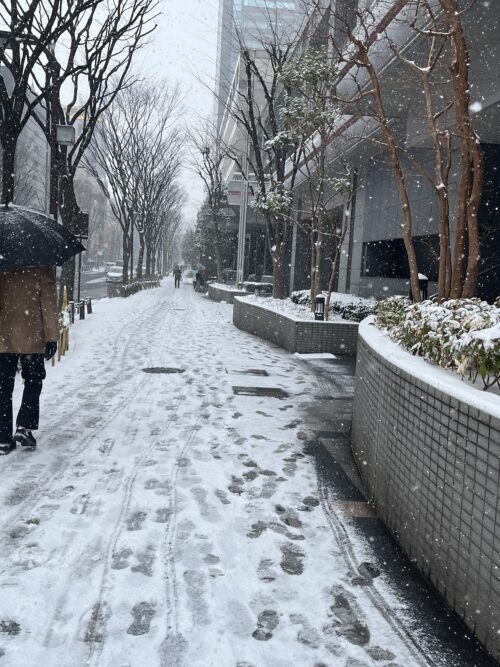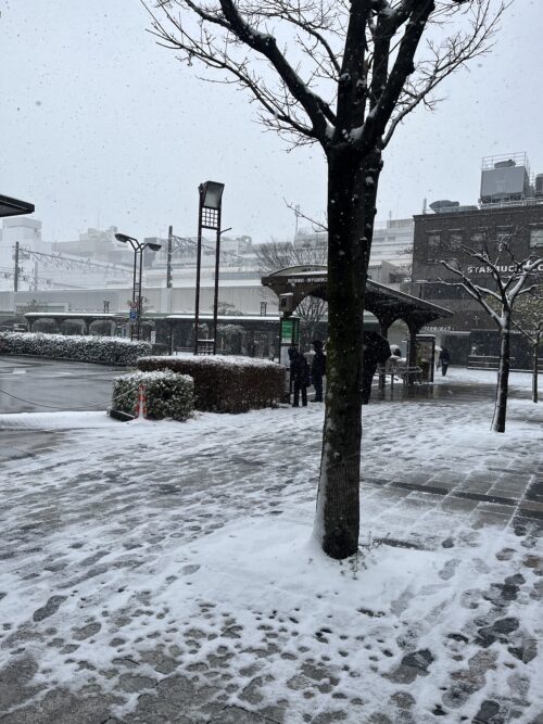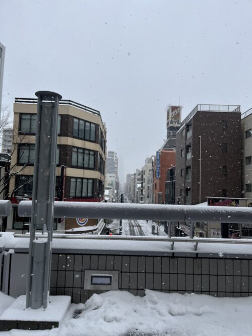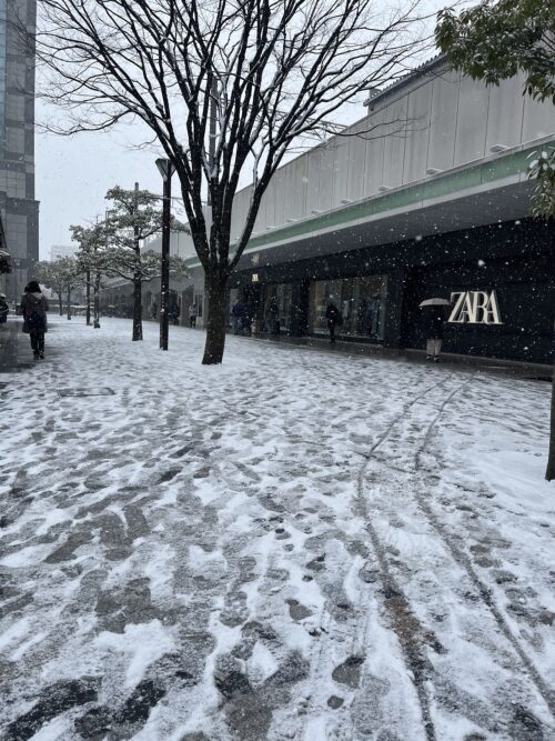 錦糸町駅雪が積もってて、滑りやすくなって歩くのが一苦労です。