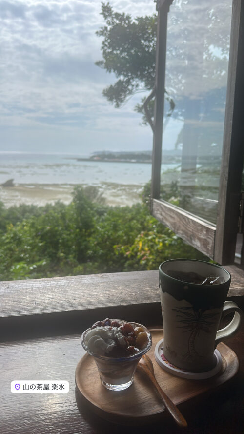 恩納村の丘の上から、、那覇港の夜の風景、、南城の浜辺の茶屋からの眺めも、、東京と風の匂いと夜の静けさが違いすぎて、車から嬉しそうに顔を出す犬の如く、眼鏡をおでこに上げて、地平線の先のぼやけた海をただただ眺めては、風を感じて整えていると、、蚊に刺されるのがまだ2月である事をバグらせる。